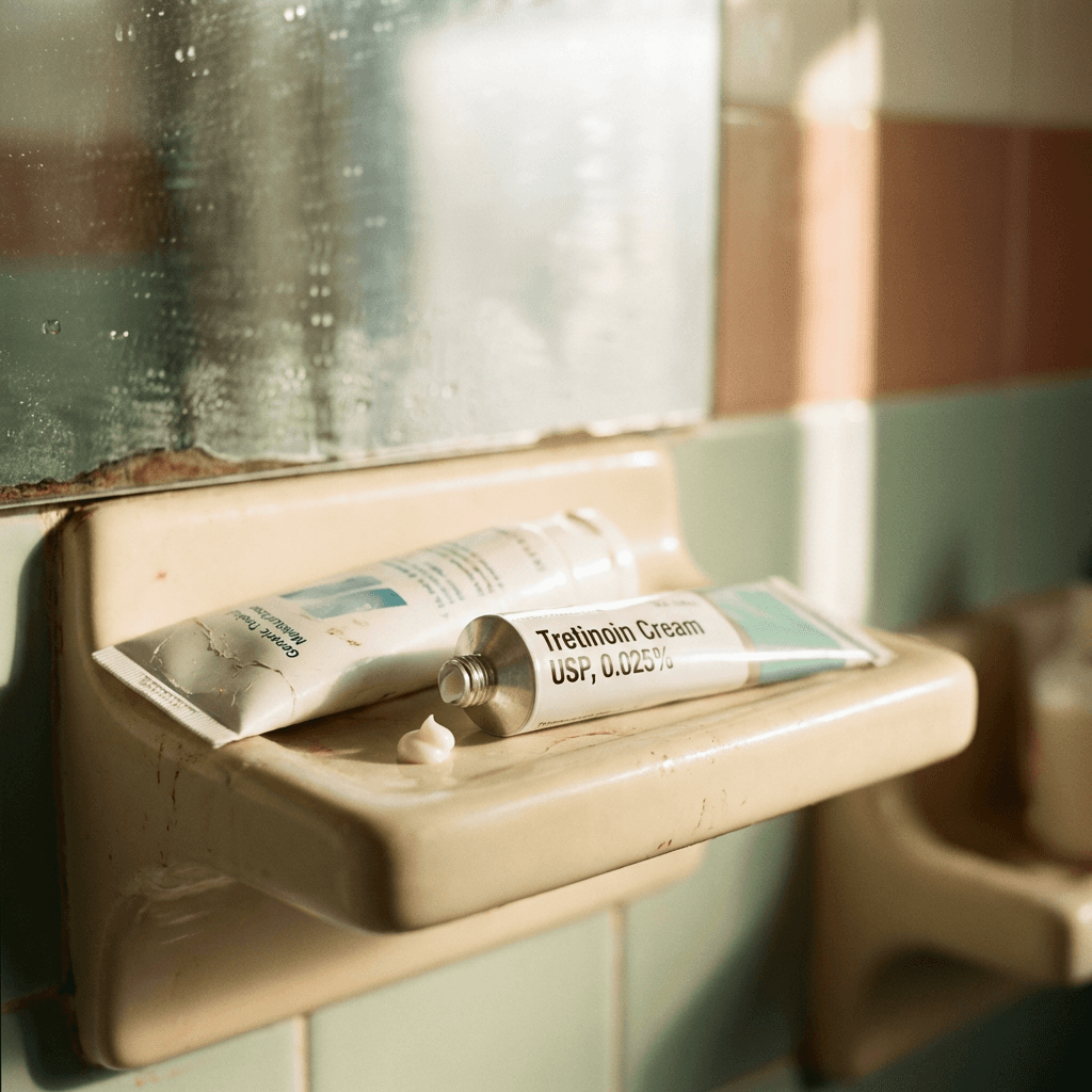 Tretinoin comes in three common concentrations [30] — 0.025% (low) [31], 0.05% (medium), and 0.1% (high) — and several formulations [32]. Starting low and titrating up is the standard approach. Efficacy across formulations is broadly comparable at equivalent concentrations; tolerability is where they diverge.